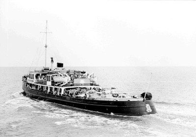 Oosterschelde foto: collectie TD Cupido | Oosterschelde (in charter) De opdracht voor de bouw van de 'Oosterschelde' voor de Provinciale Stoombootdiensten in Zeeland (PSD) kwam op 14 oktober 1932. De proeftocht was in de maand oktober 1933 en de boot is in die maand ook afgeleverd aan de PSD. 15 mei 1934 in dienst. In 1940 is het schip in beslag genomen voor troepentransport. Op mei 1940 is het schip door terugtrekkende Franse troepen in brand gestoken en tot zinken gebracht. Op 20 augustus 1940 is het schip gelicht en op 24 september 1940 is het schip versleept naar de Arne en daarna opgelegd in afwachting tot herstel. 19 augustus 1941 is het schip versleept naar Perkpolder en daarna opgelegd en op 29 maart 1943 bij scheepswerf de Schelde en hersteld. Op 1 juni 1943 is het schip getroffen door een voltreffer. 19 juni 1943 is het schip gelicht en met 6m verlengd. Op 26 augustus 1946 ging het schip weer te water onder de naam Oosterschelde.In het jaar 1959 tot en met 1963 is het schip ´s zomers vercharterd aan N.V. Terschellinger Stoomboot.Mij., te Terschelling in dienst op de lijn Terschelling-Harlingen.Op 24 maart 1972 is het schip uit dienst wegens opheffing van de dienstlijn Terneuzen - Hoedekenskerke.Het schip is op 23 februari 1972 verkocht aan Polak te Middelburg.Daarna is het doorverkocht en op 24 maart 1972 verplaatst naar Den Helder onder de naam Jutter als sportvisserijschip.Op 1 juli 1982 is het schip verder verkocht als restaurantschip aan W.B. Luttikhuizen te Lelystad Na het faillisement verkocht aan fa. Borrel te Zwolle ook als restaurantschip.