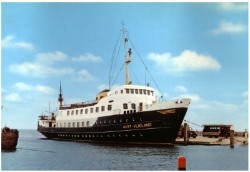 | | | Op 15 februari 1983 kwam de ‘Schellingerland’ (4) in de dienst naar Terschelling. Tegelijkertijd maakte de rederij de plannen bekend om de ‘Midsland (2)’ in te zetten op de dienst naar Vlieland. Hierop volgde een proefvaart van de ‘Midsland’ (2) naar Vlieland die op 18 maart 1983 werd gehouden. Op 13 juli 1983 kwam de ‘Midsland’ (2) dan in de dienst naar Vlieland en verving hiermee de ‘Oost-Vlieland’ (2). De laatstgenoemde werd reserve- en versterkingsboot en kreeg in 1984 een ro-ro klep aan de achterzijde. Kort nadat de ‘Midsland’ (2) in de Vlielanddienst was gaan varen, werd het schip omgedoopt in ‘Vlieland’ (3). Eind 1986 maakte de rederij bekend dat men de ‘Vlieland’ (3) grondig wilde renoveren. De twee MTU Maybach hoofdmotoren werden in maart 1987 door Machinefabriek De Greuns vervangen door twee GM’s. Eind 1987 begon men bij de werf ‘Welgelegen’ in Harlingen met de werkzaamheden voor de nieuwe deksalon achterop het promenadedek. Ook werden de roldeuren voor de rijgangen vervangen door waterdichte deuren. Tijdens Pinksteren 1988 was men aan de buitenkant nog niet klaar met de schilderwerkzaamheden. Sterker nog, de nieuwe deksalon was helemaal niet geschilderd. Toch werd het schip die dagen ingezet en kon men het schip met een grote roestbruine bult achterop aanschouwen. De ‘Vlieland’ (3) heeft na de grondige renovatie niet zo heel lang meer in de dienst naar Vlieland gevaren. In 1994 werd het schip verkocht naar Kenia. Daar heeft het gevaren onder de naam ‘Serengeti’ tussen de eilanden Zanzibar en Pemba voor de rederij AZAM Marine en later JAK. Wat daarbij opviel was de zeer wisselende staat van onderhoud van het schip. Op 13 maart 2010 brandde het schip volledig uit. Vermoedelijk was de brand ontstaan tijdens laswerkzaamheden in de machinekamer. |